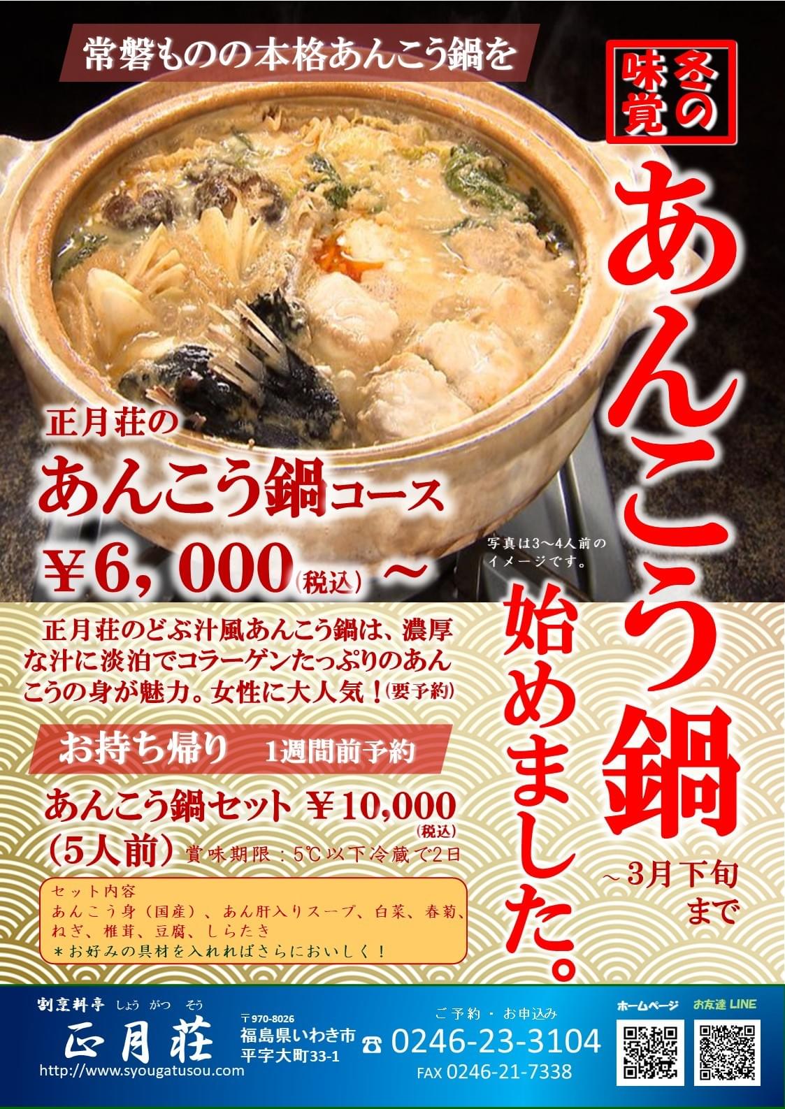 *あんこう鍋のテイクアウトも承りますので下記のちらしをご覧ください。